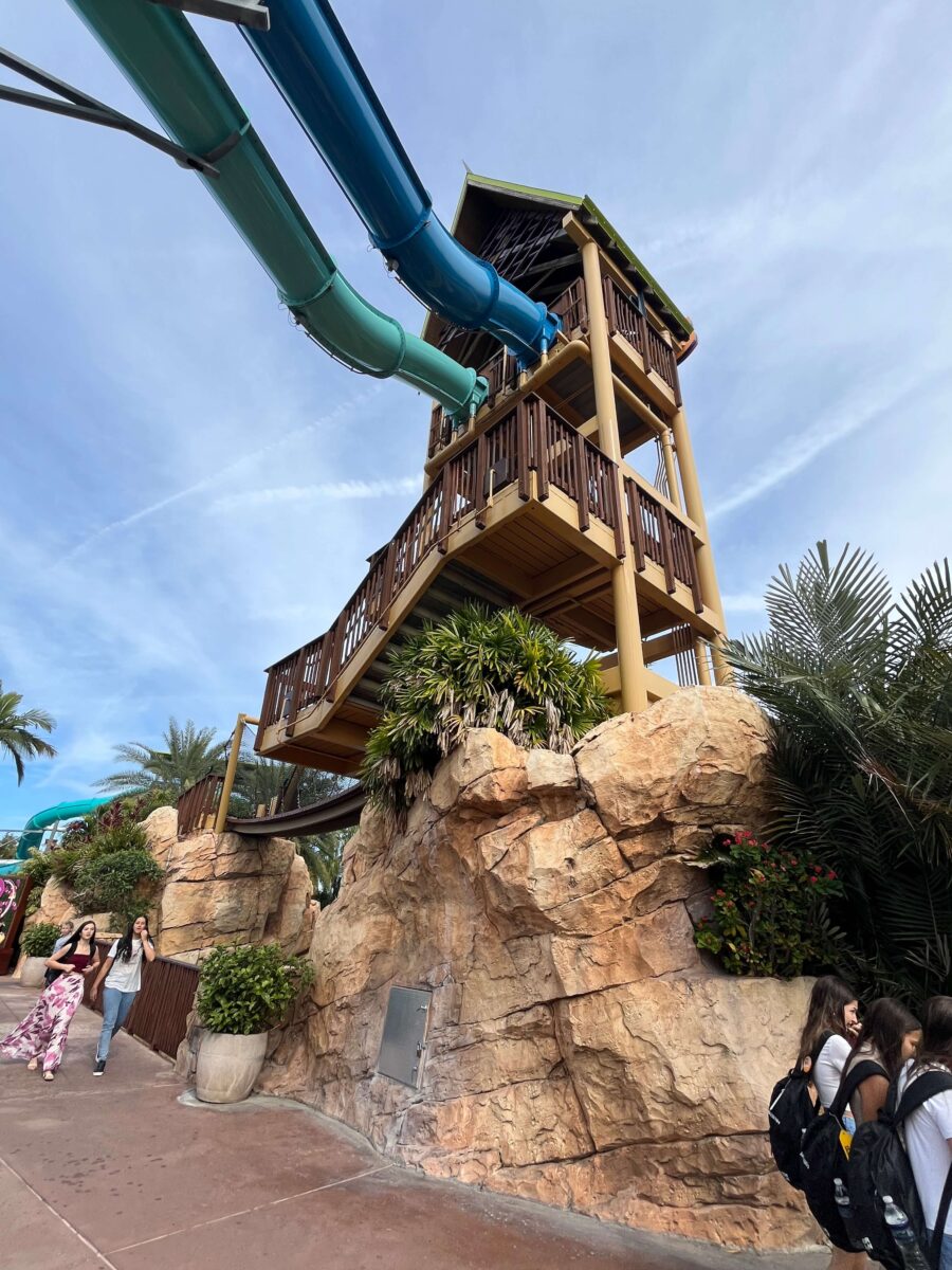 This attraction features two mirror-image slides for double rafts and each has a tornado-style funnel. It was a medium-high thrill and my family loved it! They went back multiple times for this one.