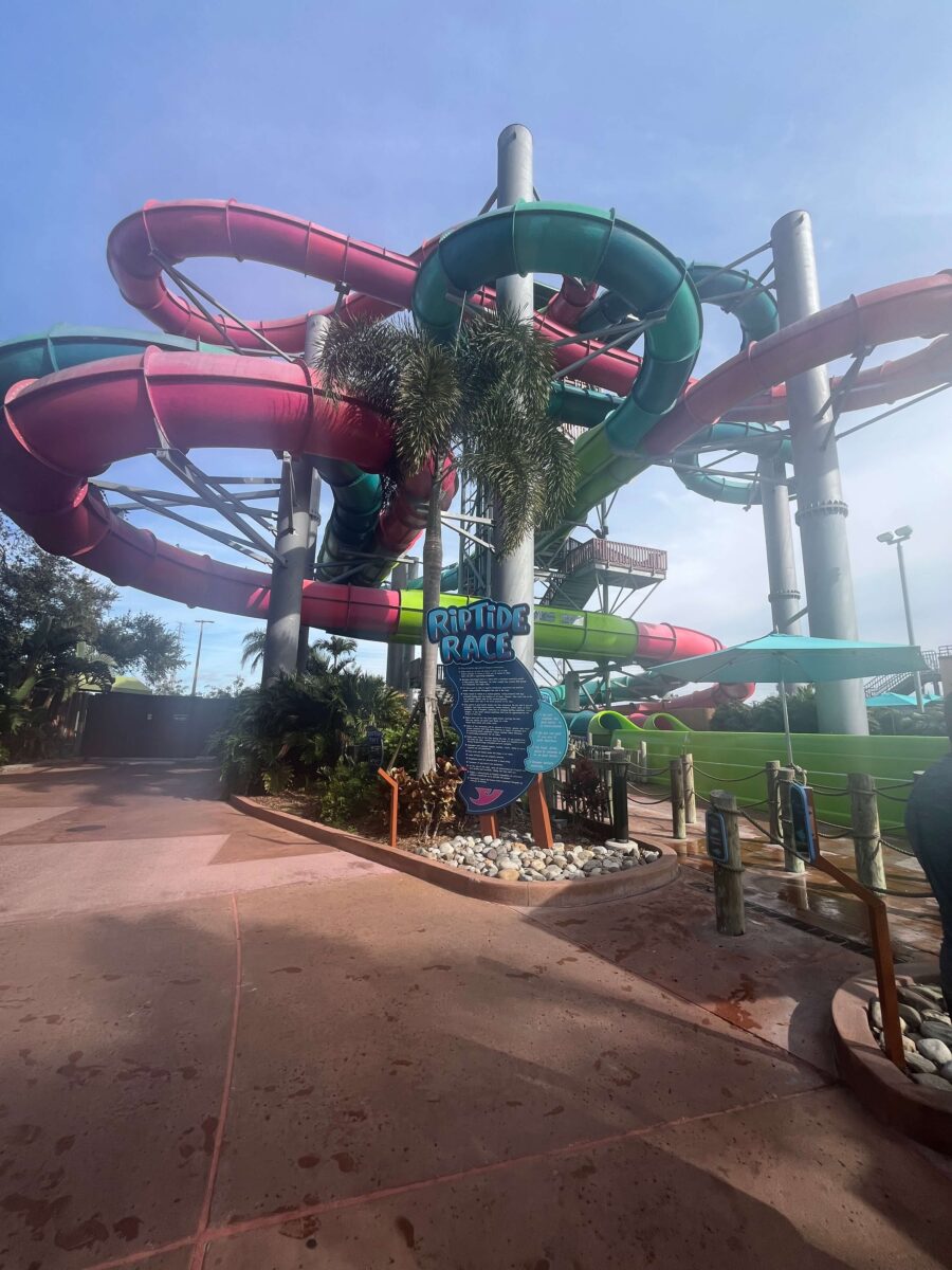 Because of the low crowds, we had minimal waits. We were able to circle the park and experience all of them in about 4 hours, then go back to our favorites for a second (or third) run. After a short break, we returned to Walkabout Waters and watched our youngest play there until the park closed. Our legs were sore from walking up the stairs to all the slides, but our 9-year-old still had energy to burn!