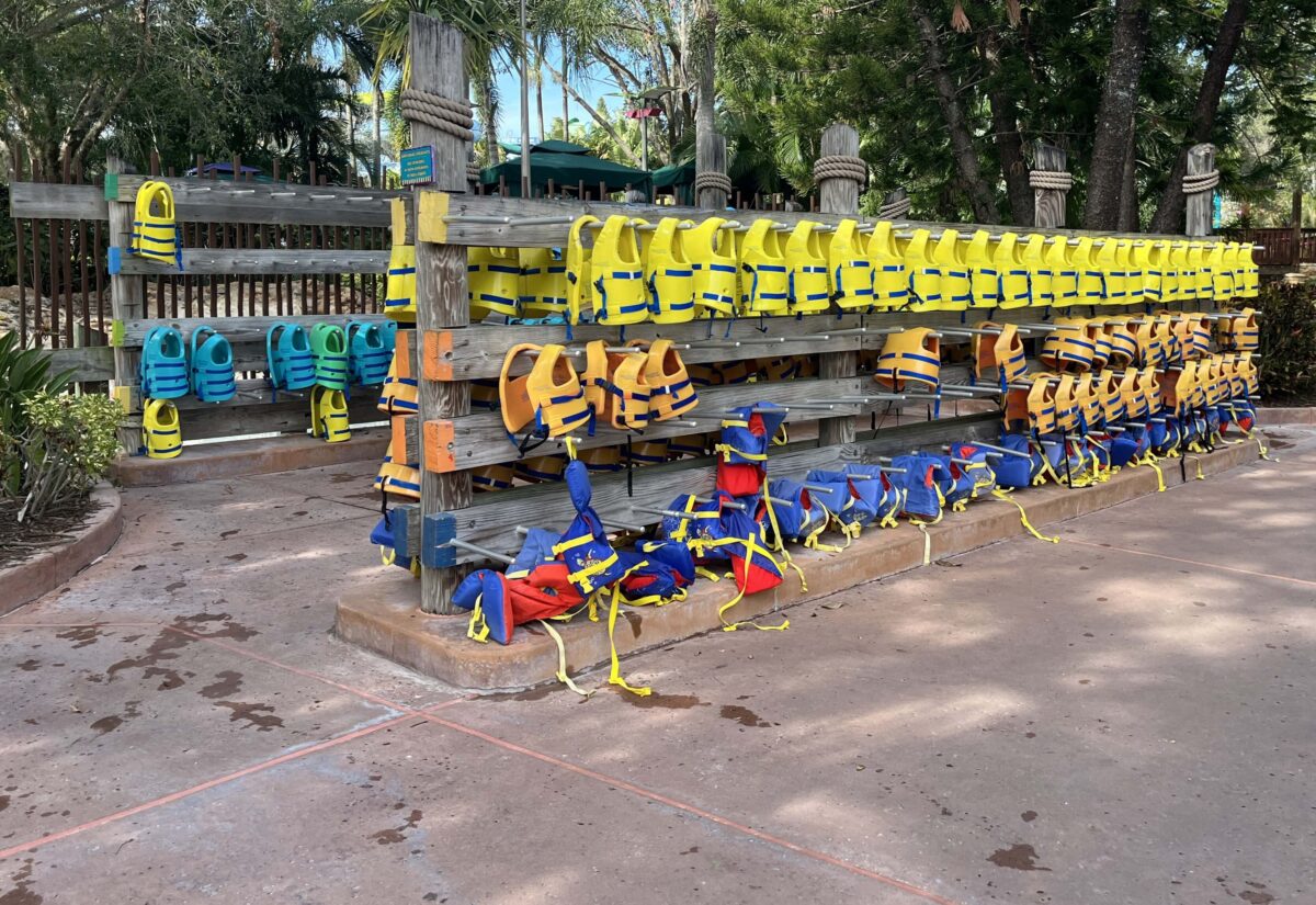 The one tip we’d share is to wear shoes! Hot pavement wasn’t an issue during our visit, but we did encounter several stray acorns. (Ouch!) There are “sneaker stashers” outside of each attraction, so you can drop your shoes in a cubby and retrieve them when you’re done. Despite the name, I’d recommend flops or Crocs.